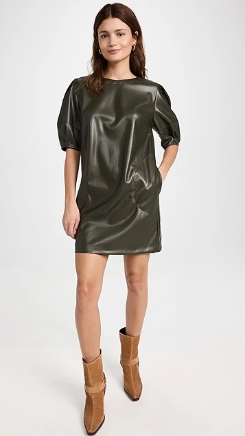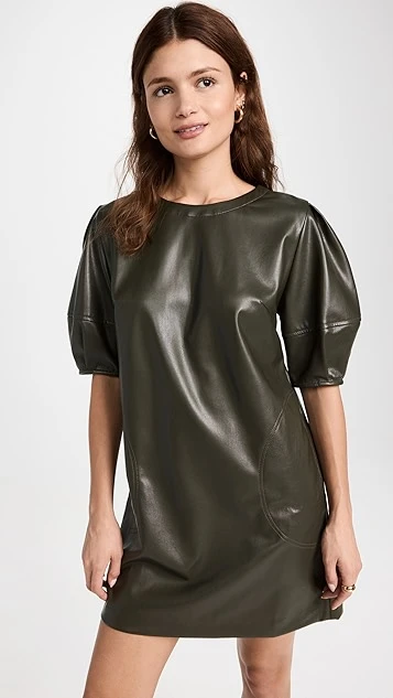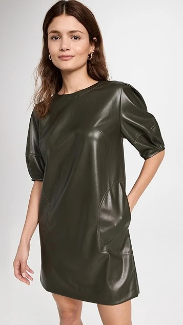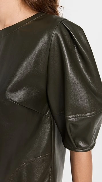 - Pleated elbow-length puff sleeves
