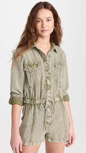 A cool one-and-done option for summer weather, this Young Fabulous & Broke romper stands out with heavily faded linen-blend fabric, and features a classic utilitarian design.