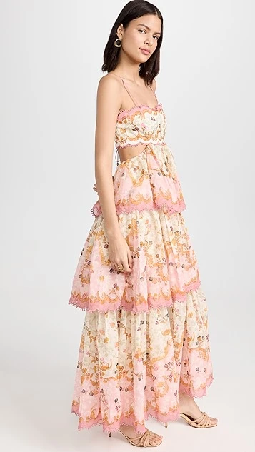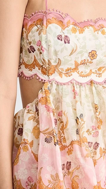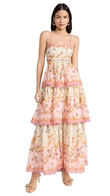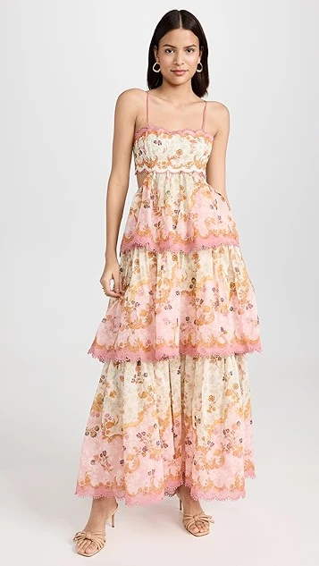 - Tiered skirt and scalloped trim
