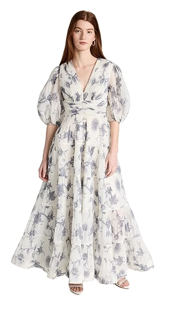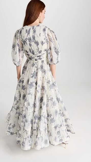 - Elbow-length puff sleeves with elastic cuffs