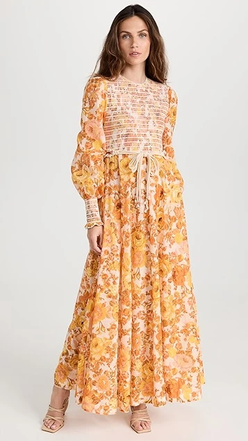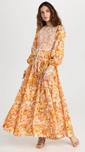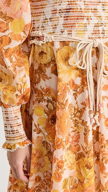 - Jewel neckline and smocked elastic bodice