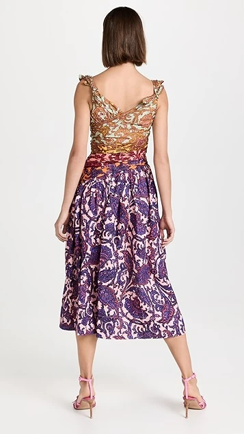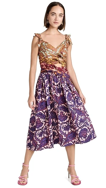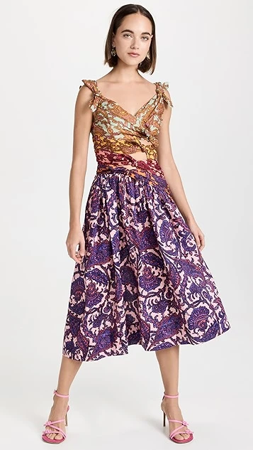 - V neckline and ruched bodice with cutout accents